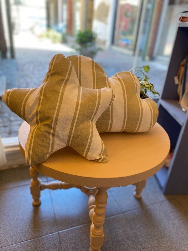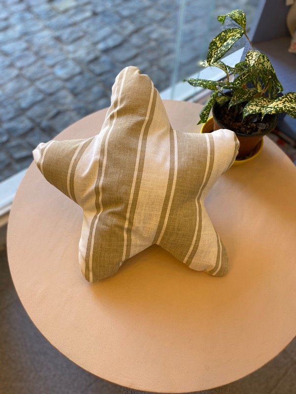 Almohadón con forma de estrella, fueron pensados para decorar habitaciones o espacios de juego y/o lectura de los niños.