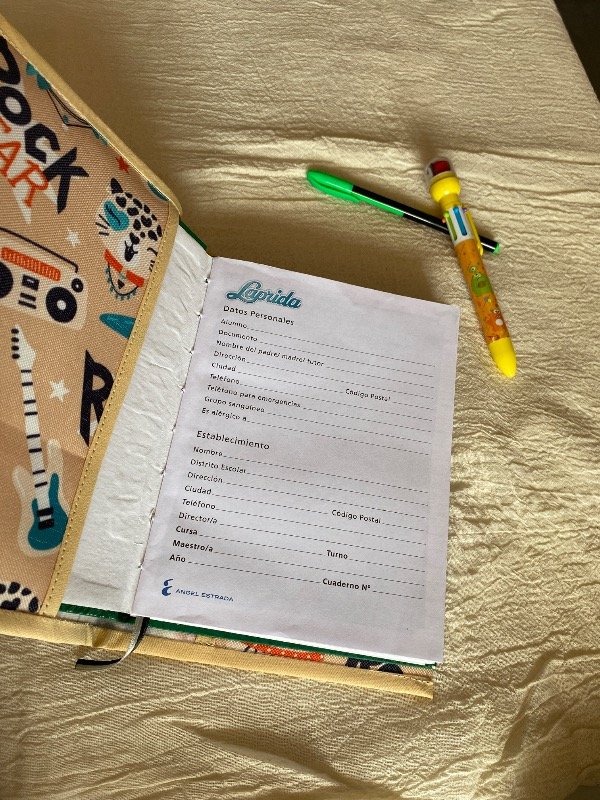 Se coloca fácilmente y se adapta perfecto al cuaderno.
