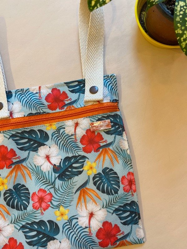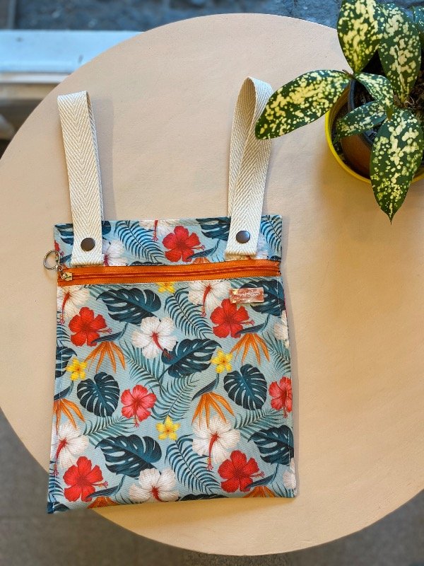 Bolsillero para reposera simple flores tropicales