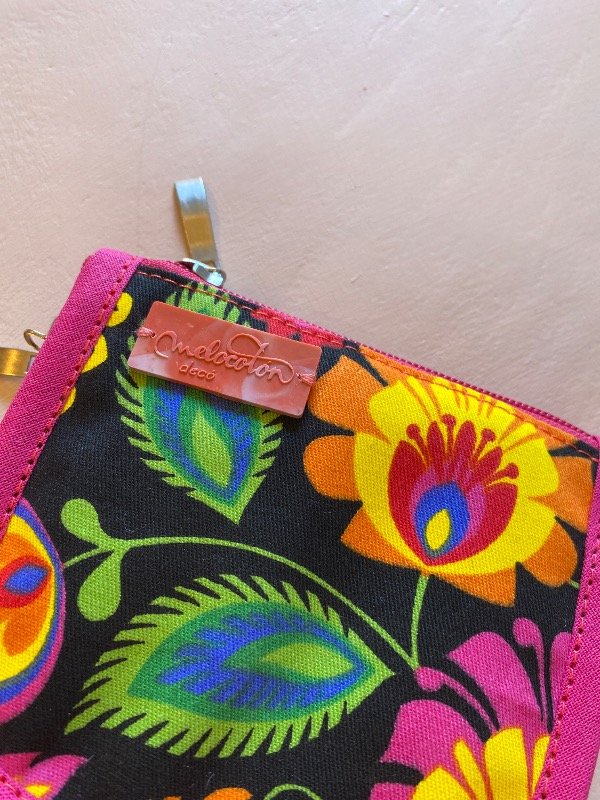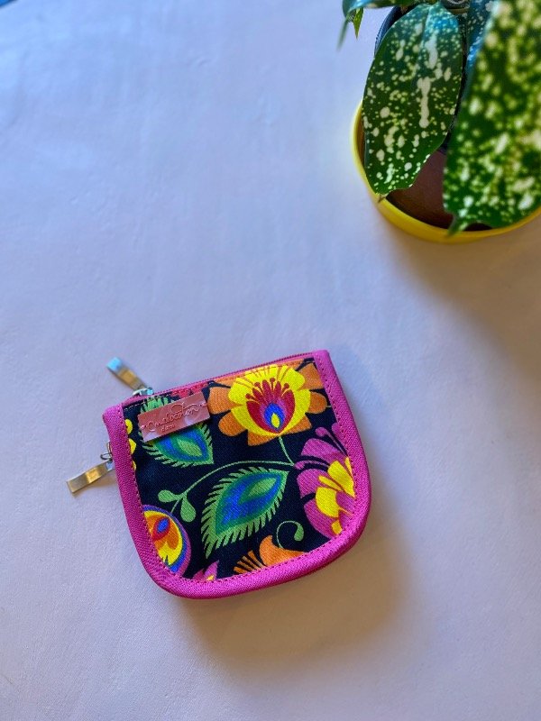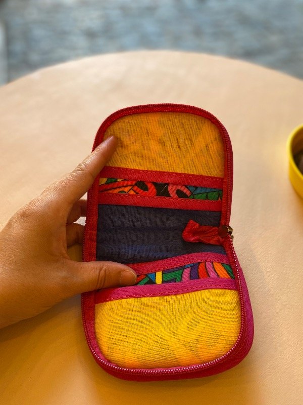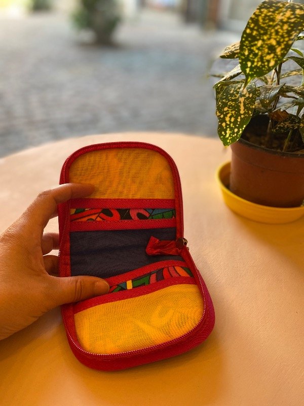 La mini billetera está confeccionada en telas de algodón y tiene cierre en todo su contorno, lo que permite mantener todo seguro. En su interior cuenta con 4 bolsillos pequeños ideales para guardar tarjetas, documentos o carnet.