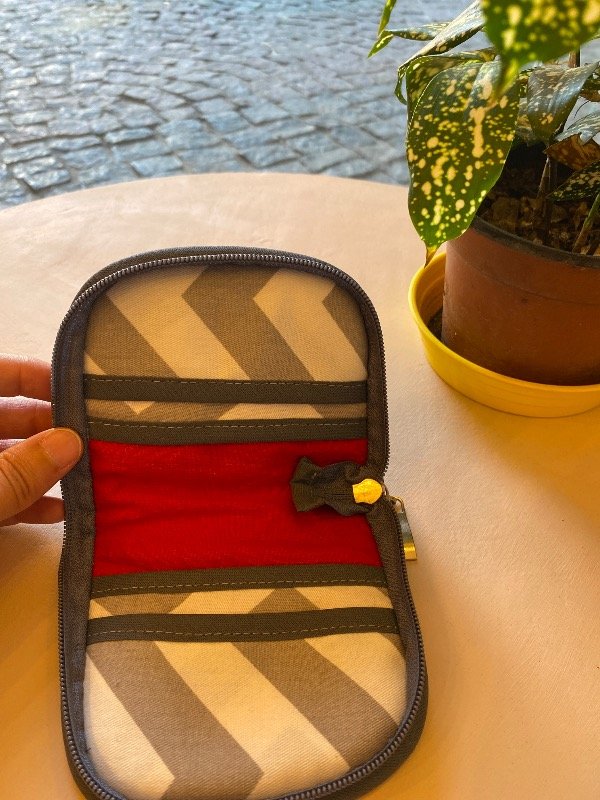 La mini billetera está confeccionada en telas de algodón y tiene cierre en todo su contorno, lo que permite mantener todo seguro. En su interior cuenta con 4 bolsillos pequeños ideales para guardar tarjetas, documentos o carnet.