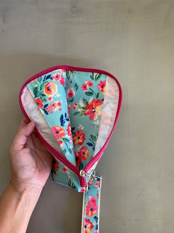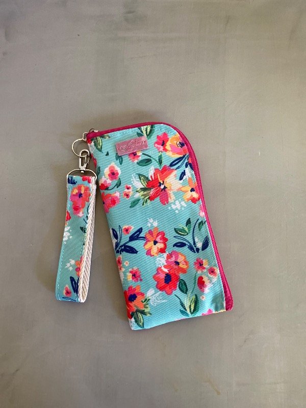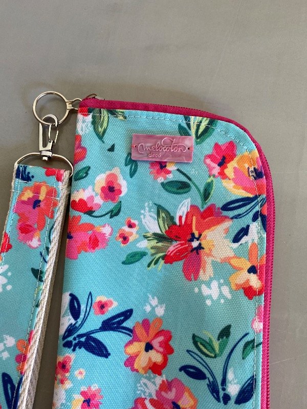Sobre-billetera con llavero flores fdo Aqua