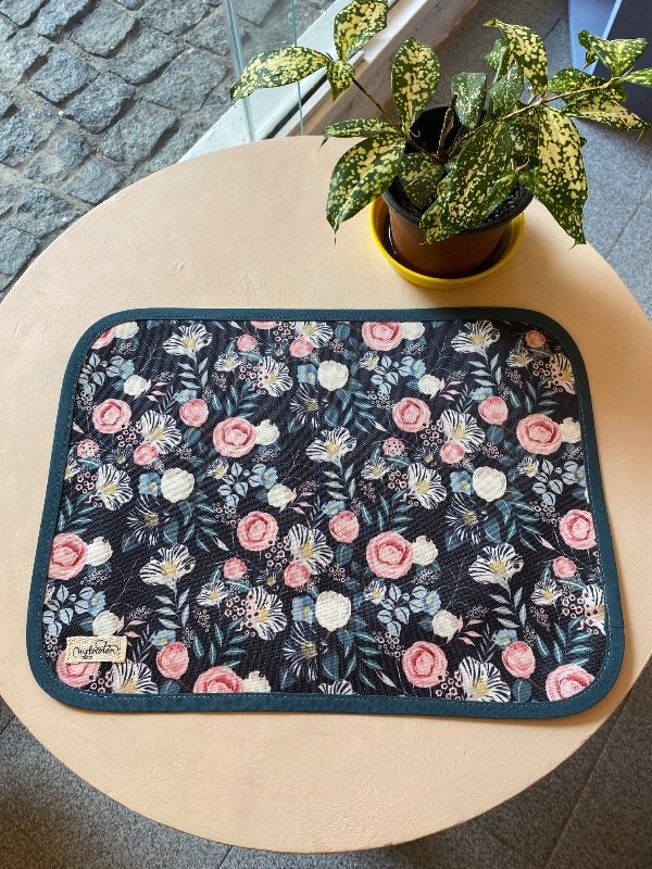 Individual impermeable grande Rosas fdo oscuro