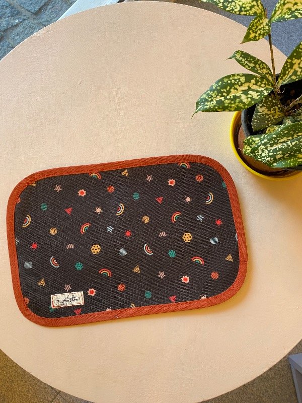Este individual está confeccionado en tela impermeable, ideal para acompañarte en momentos simples: el mate, el café, un desayuno o una merienda.