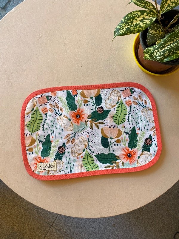 Este individual está confeccionado en tela impermeable, ideal para acompañarte en momentos simples: el mate, el café, un desayuno o una merienda.