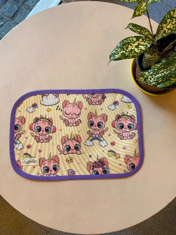 Este individual está confeccionado en tela impermeable, ideal para acompañarte en momentos simples: el mate, el café, un desayuno o una merienda.